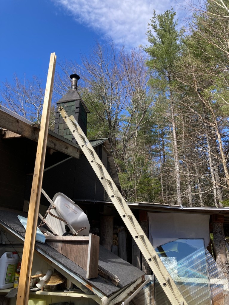 I utilized the extra hands once a collar had been fit (a lovely little scrap leftover from the J-tube rocketstove) and the stovepipe needed to be reconnected.