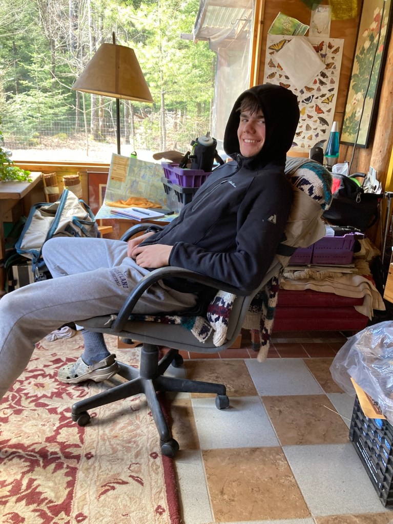 Deedles has made his bed, staged his luggage, is futzing with some homework. I’m heating chowder and we’ll hit the road just after noon. He has a basketball tournament in the Boston area this weekend (or I’d be keeping him!!!)