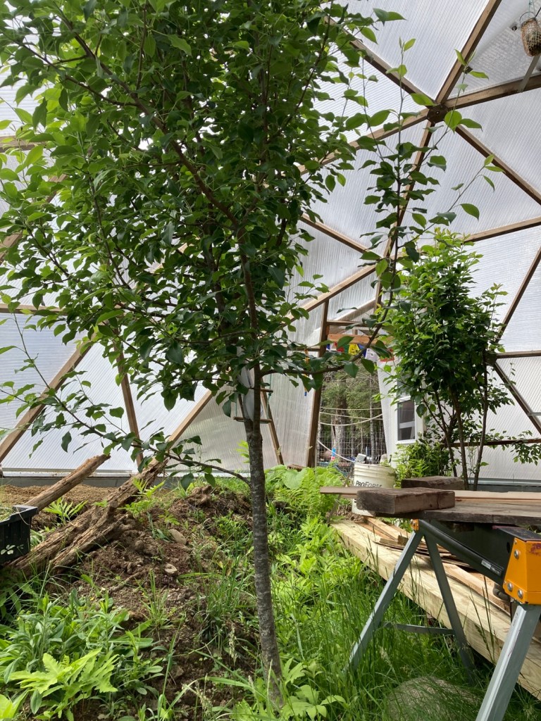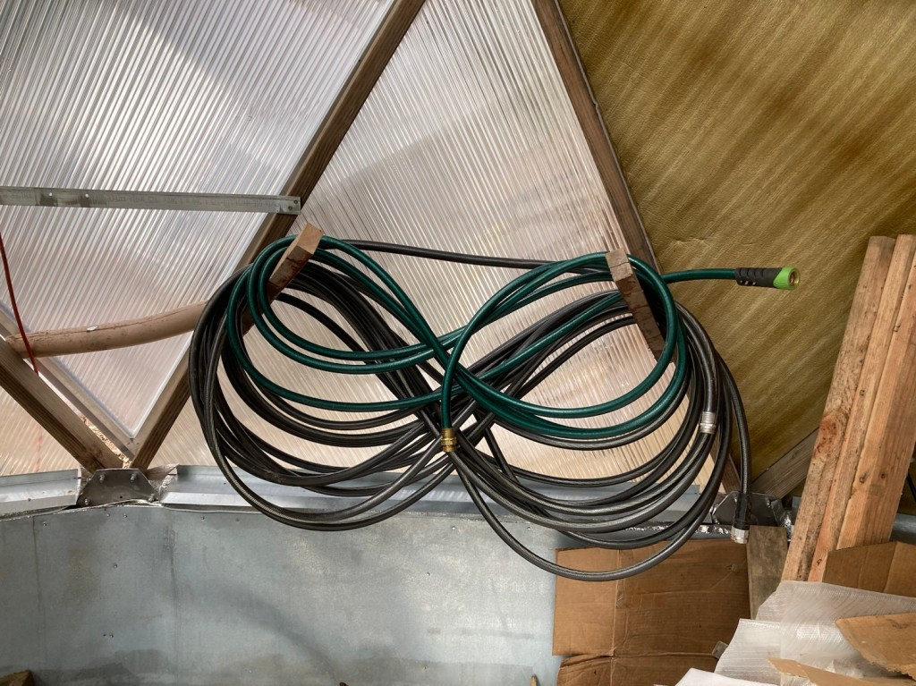 This gets the hoses off the ground too. We topped off the indoor pond during the week. The well is plump so a few gallons didn’t make a dent. I also watered the grome while at it, spraying things down and making sure they didn’t forget what rain, the force of a water massage felt like. No wimpy plants in here!!