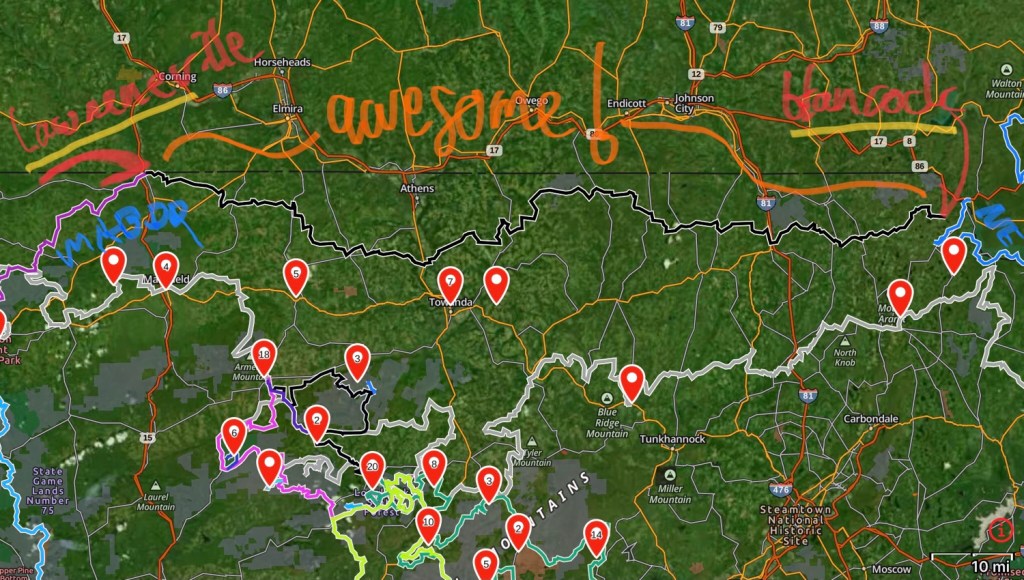 Long story short, I took a screen shot of a nascent alternate route between the East Coast BDRs from Gaia, made some notes, and tossed it up onto the site where the communique was evolving.