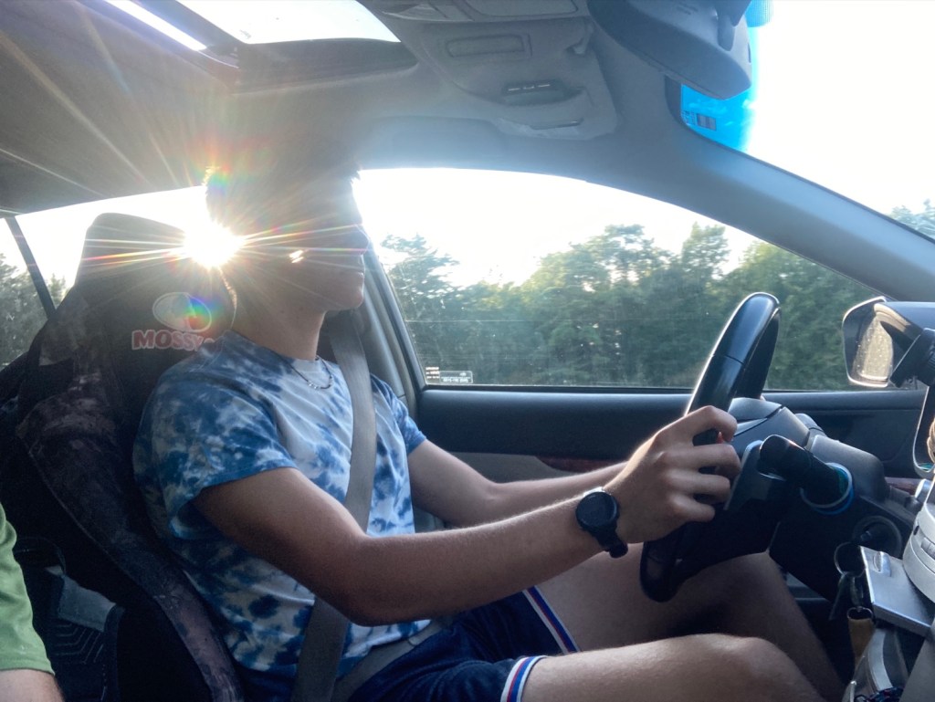 After an Amato’s snack, early dinner. I’m EXHAUSTED from work and tickled to be passenger. I worked until 4, now have Deedles and we’ll do a veggie shop in Brewer as opposed to Portland. We were considering delaying departure so he can clock some “dark hours” that are necessary for his licensing. We are hot to trot to get upta camp though…