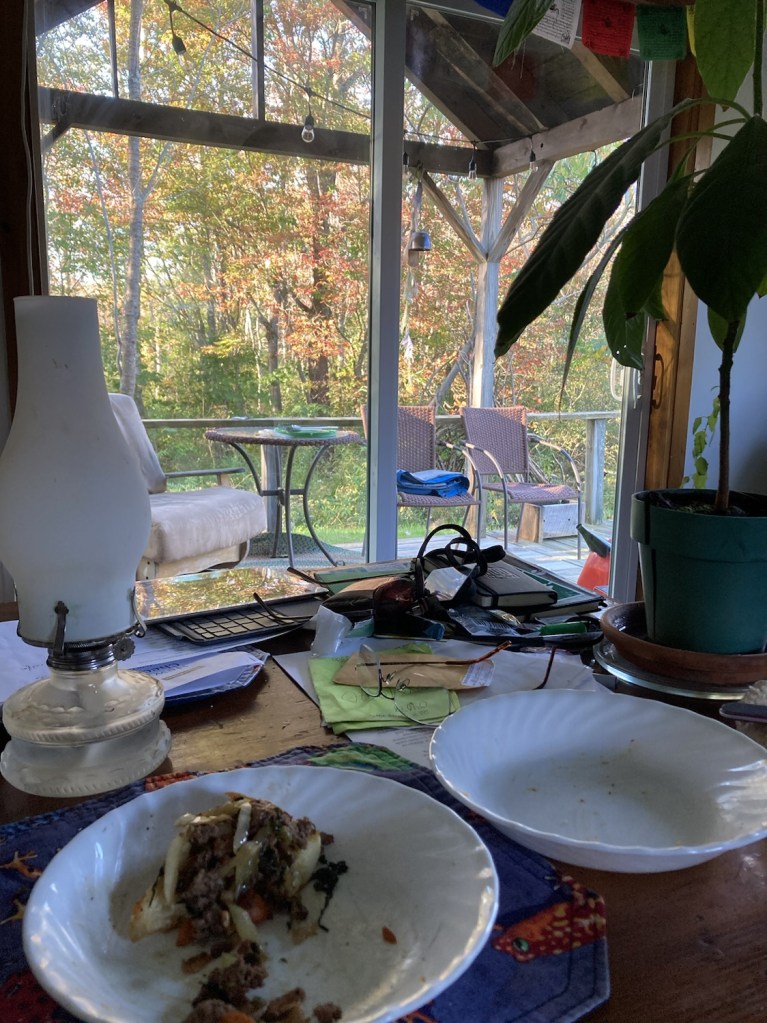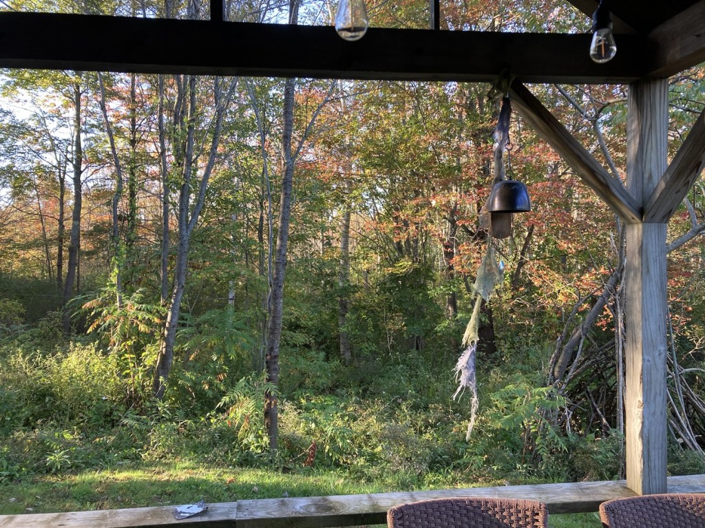 Chilly enough to not sup outside, but appreciating the colors, breeze, shift in canopy. Shorter days but less filtration. Riding the motorcycle to work as long as the road conditions permit