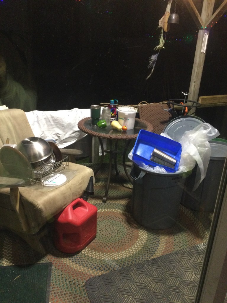 To clean corners and spiderwebs and cobwebs here and there. It made sense to neutralize any web makers and other critters before I cleaned. Don’t really want to do that after 8 hours at work, but I’ll peck away at some cleaning, bring in the kitchen stuff from the porch. Won’t be long and I’ll be in bed…