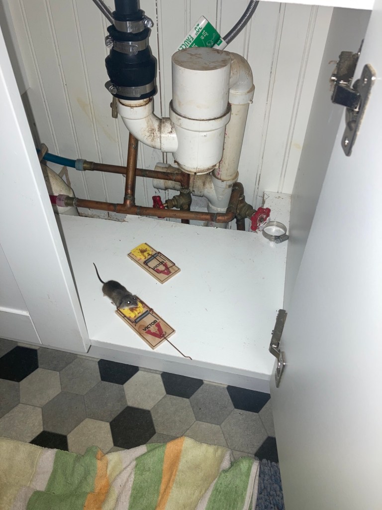 I heard the snap and subsequent momentary flip-flop. The folks that lives here before me (for two years) mentioned an “under the sink problem) so I laid a trap. It may have taken a couple weeks, but it paid off. I moved my other trap in after the snap as I heard other movement, but only one today.