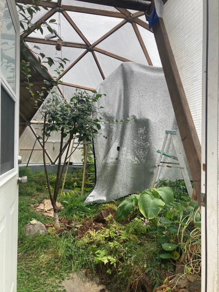 Taking the sunshade down, topping off the indoor pond, switching vents over to winter mode (top ones won’t open, tuning the seizes to open less) and missing being more involved with the gardening process in the grome.
