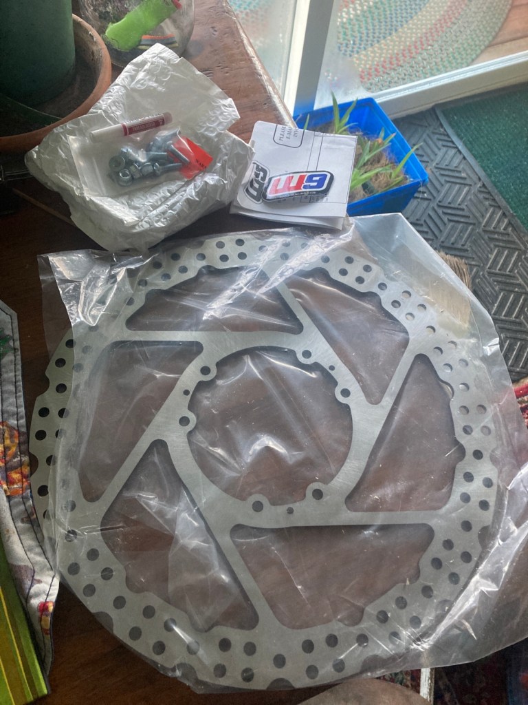 I don’t know if I’ll undertake installing this new “oversized” brake rotor. The simple physics of it are this, the rotor is larger in diameter, therefore has greater mechanical advantage to slow the rotation of the wheel, increase braking ability for the front of btwxd.