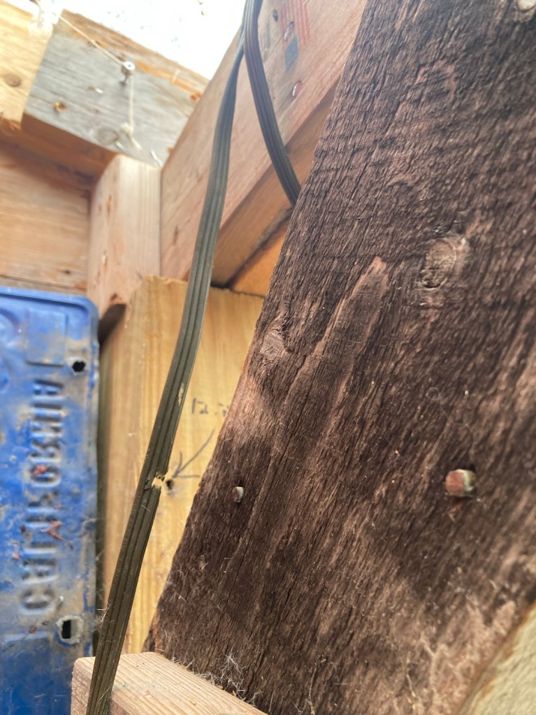 I compromised an extension cord in the process, but a small problem compared to having squirrel traffic indoors!
