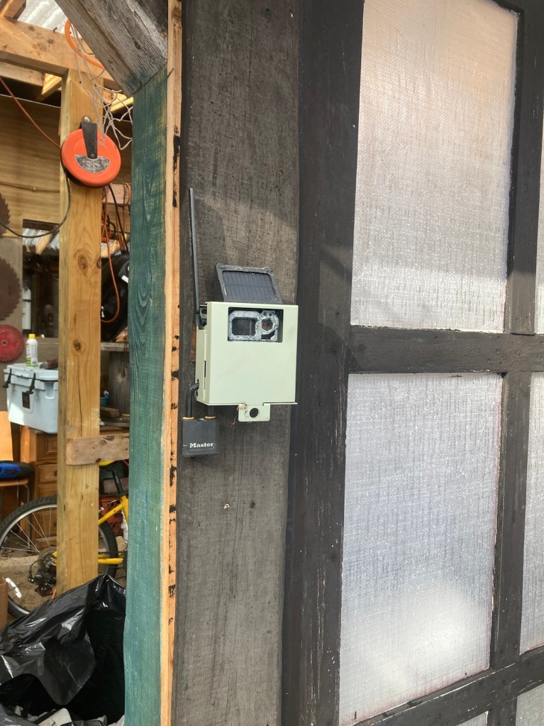 And drain the water supply. I’ve installed an eye on the front of the Borch, y’know, to keep an eye out (on the front yard.). Maybe the sun will keep it charged. It posts the images that are taken online, allowing to me to “check in”.