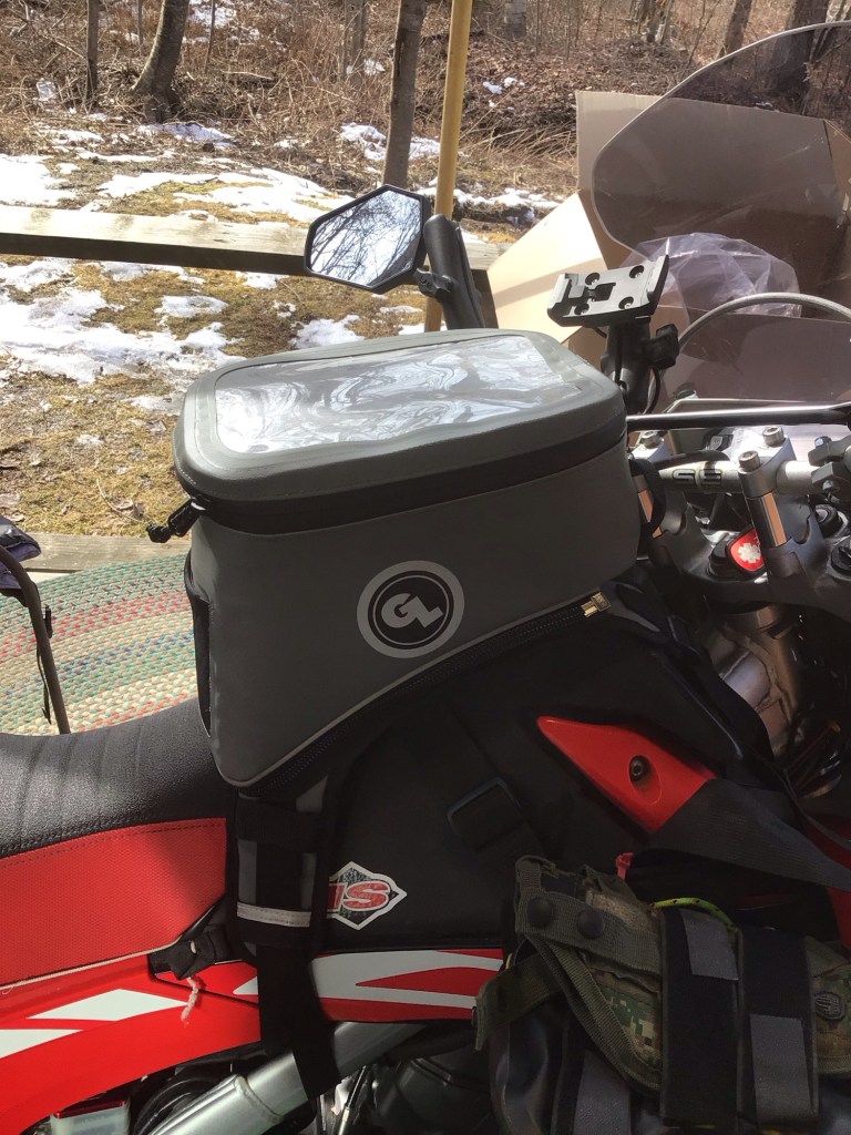 “Zip it and Flip it” fueling mode. The bag completely zips off for any number of reasons. Going to take them out for a little shakedown cruise. The tank bag will stay on. The rear bag will come and go for trips, it lashes down in four spots, easy-peasy once fiddled into location!