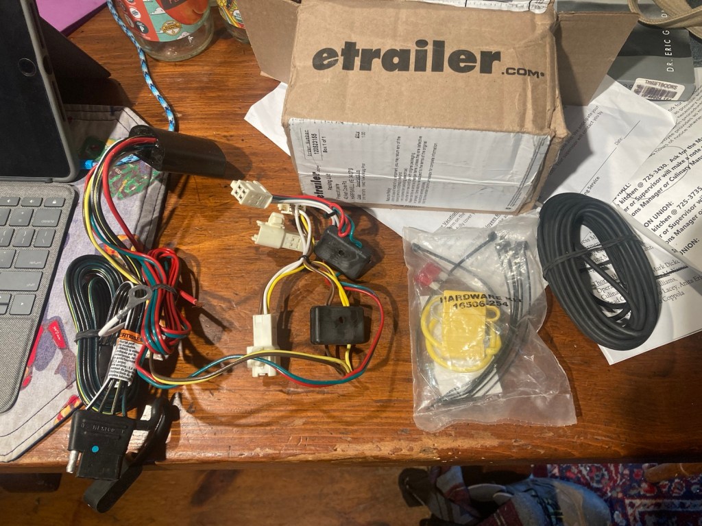 Included in the box is a “plug and play” kit to light up my trailer. It’s not a super involved instal, but includes pulling some interior panels, disconnecting some connectors, plugging in the new wiring harnesses (left and right blinkers with brake and running lights) then reconnecting, making a ground and running a power line (with inline fuse) to the battery. I’ve been assured there is no drain when the taillight harness isn’t connected (to the trailer), hoping that’s the case!!!