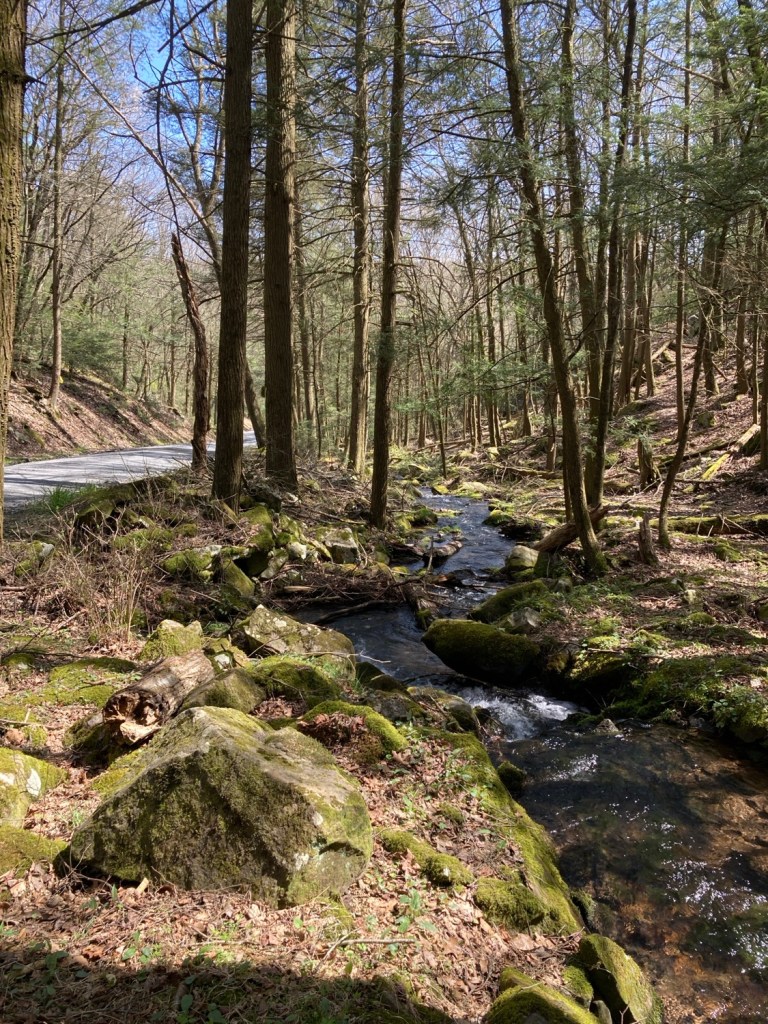 Filled up (after dumping what I had left) at a nearly 100 year old spring and chilled by the stream across the dirt road from it.