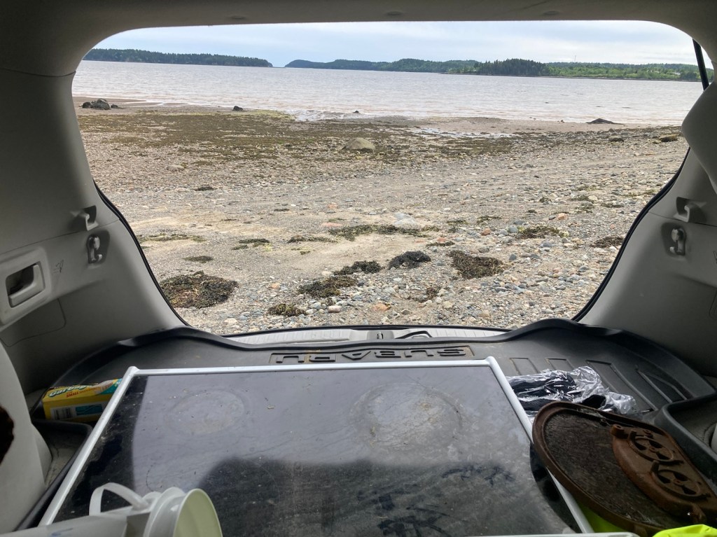There’s a pleasant onshore breeze and a high layer of clouds obscure the full blast from the sun. A pleasant pitstop before work. My arrival time is settling in at 3:30p, later than I’d like to go in, but I’m a “closer” so it’s a backwards planning thing: have me there to clean and close the line with the goal of keeping me under 40 hours. It saves on labor costs.