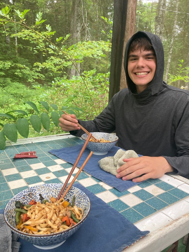 Before heading to work. We did the same thing yesterday. He’s seriously digging the Momofuku noodles so I’ll send him a bundle soon.