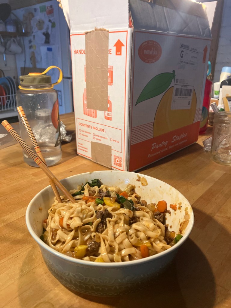 Deedles got his Momofuku bundle and promptly whipped a killer bowl, that’s @$$ kicking goodness, makes a Papa proud, and I can’t wait to squeeze him Sunday!