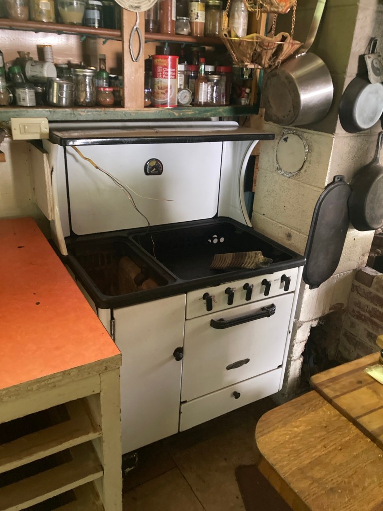 But its usefulness has drawn to a close. The coal/wood burning side hasn’t been hooked up for over a decade. The gas burners are very low BTU output and two or three actually work. The oven doesn’t. It’s taking WAY too much space.