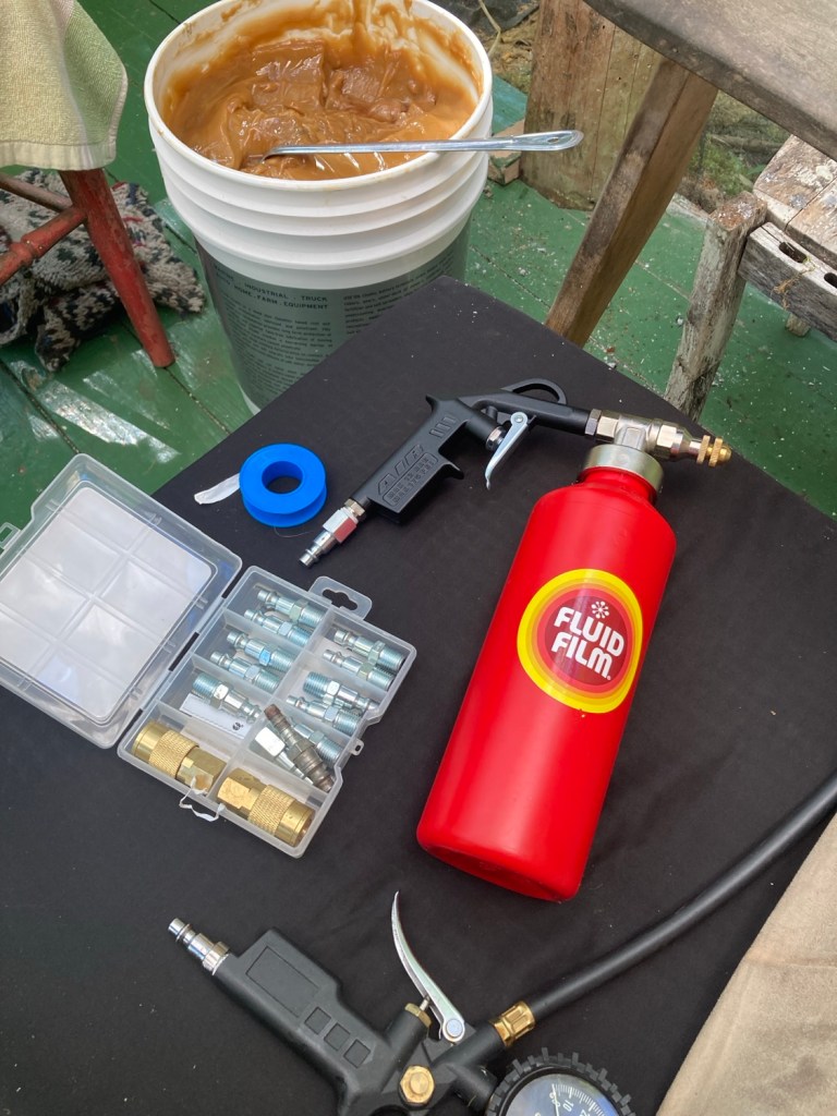 For half the price of an application/treatment, I scored five (yes, FIVE!) gallons of the miracle goo AND an applicator. Said applicator needed an adapter, and this the self high five part… I thought for a sec, followed that trickle, and BAM found what I needed.