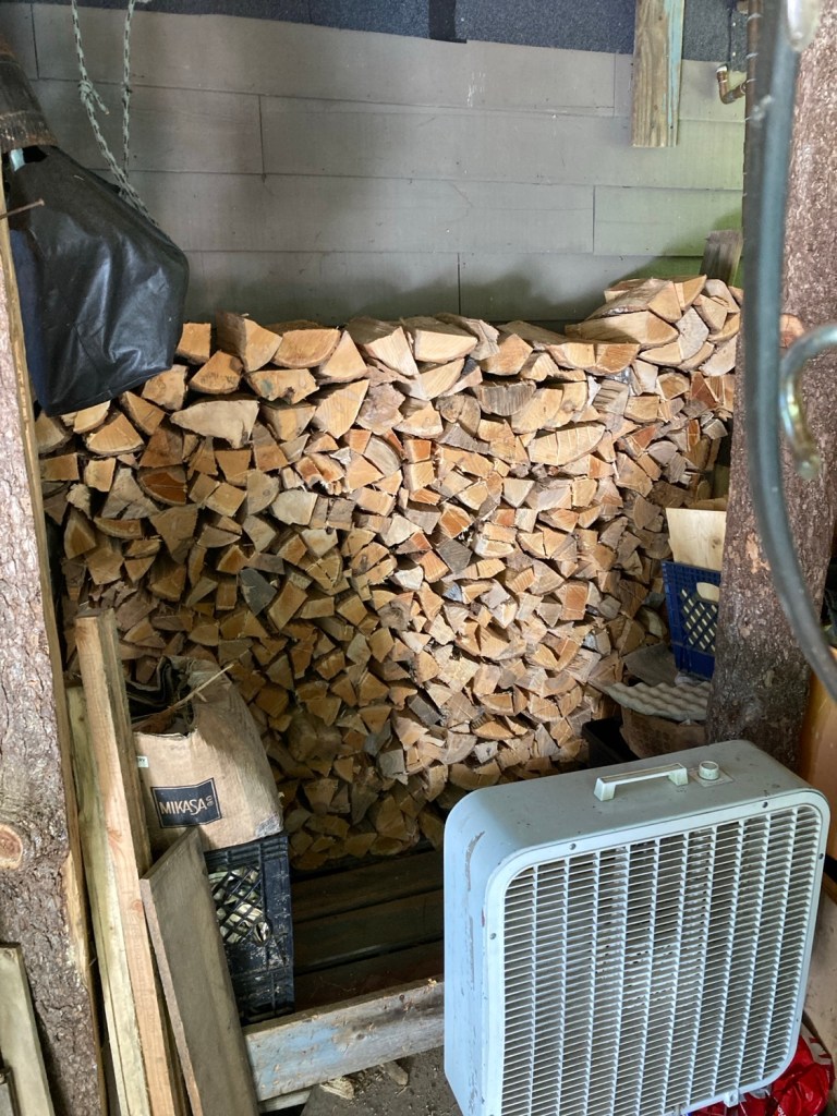 Shifts slowly, the progress is visible in the woodshed. Easy splitter drop of, quick shop and home (to walk the trash out to the pavement, jumped on the opportunity as the folks are a day late or something). That warmed up the wheel barrow, I even lubed the axle.