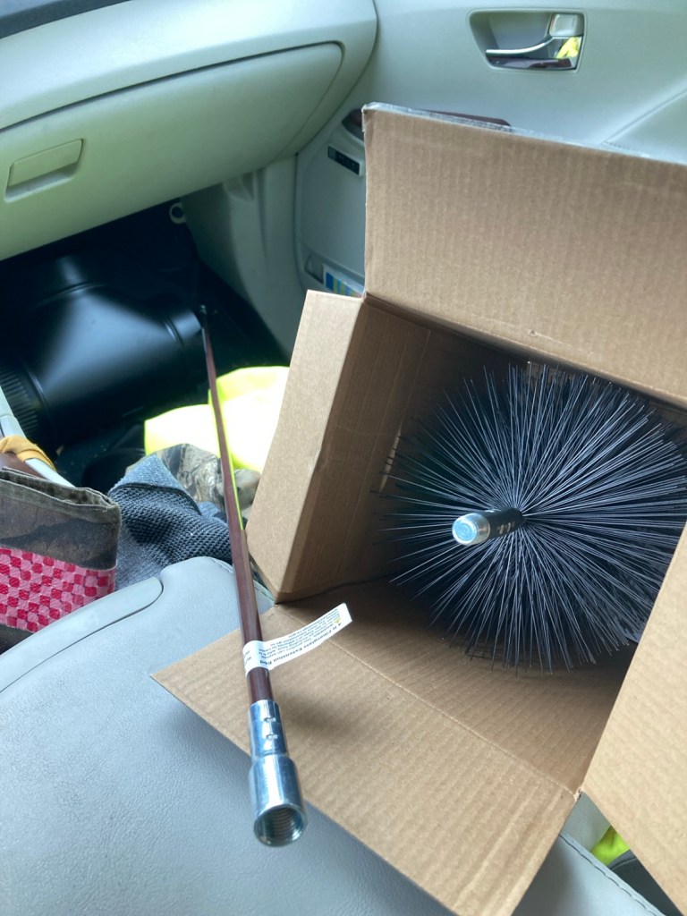 I think I’ve cracked the code on the bench to flu connection, read HOPE. Had a fire today in the backup stove, chasing the damp chill, so couldn’t fiddle with the chimney portion of things. I think I have what need on that end.