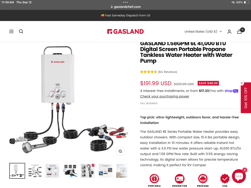 I don’t need a hot tub to consider cleanliness, but it’s a motivator. The same company I’ll likely get my drop in stovetop from has a variety of water heaters, many of them “portable”. They are filling a growing niche of campers and cabin types, “off grid” if you will.