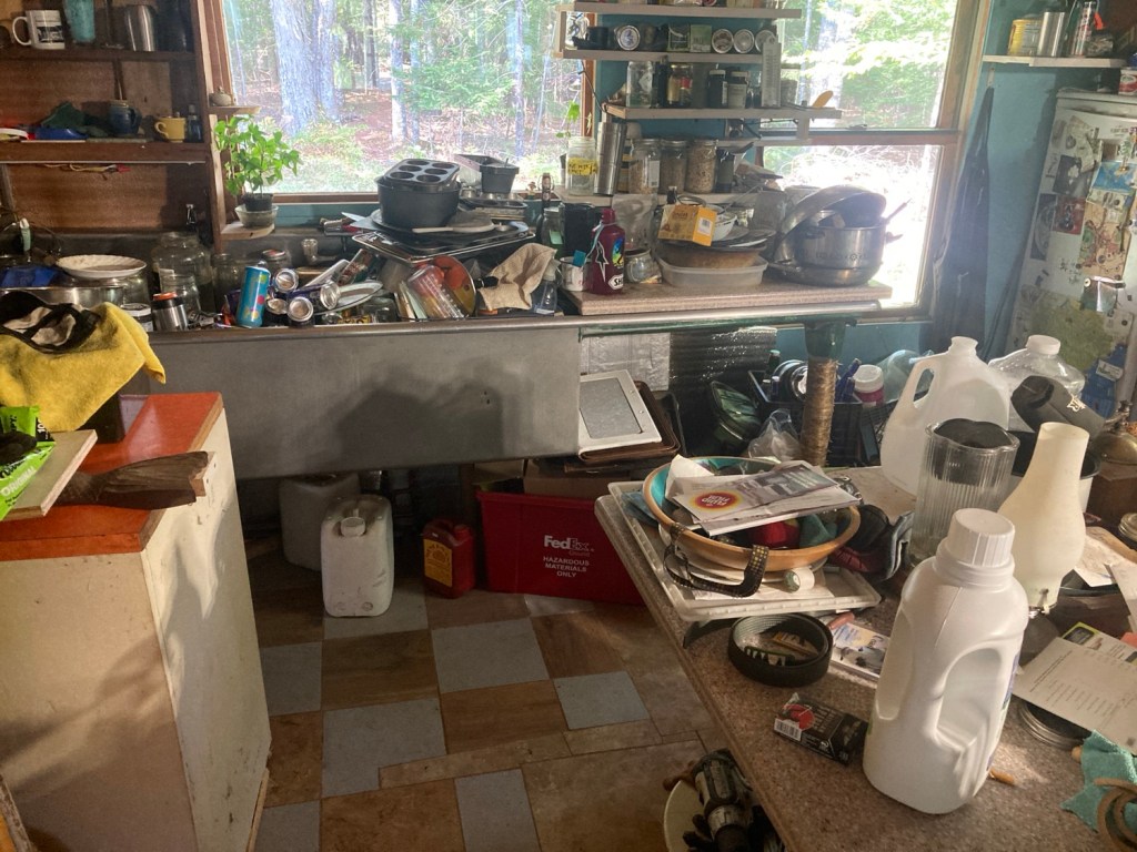 The kitchen and sink areas are just piled with stuff, lots of it needs to just go. Sorting some of that out, while I make room for ideas about the water heater. That process might happen sooner than later, utilizing the less used half of the sink. Can I fashion a dish drainer that will easily make room for bathing in the second bay? Yes, it’s just going to take some fiddling, once cleanup has happened
