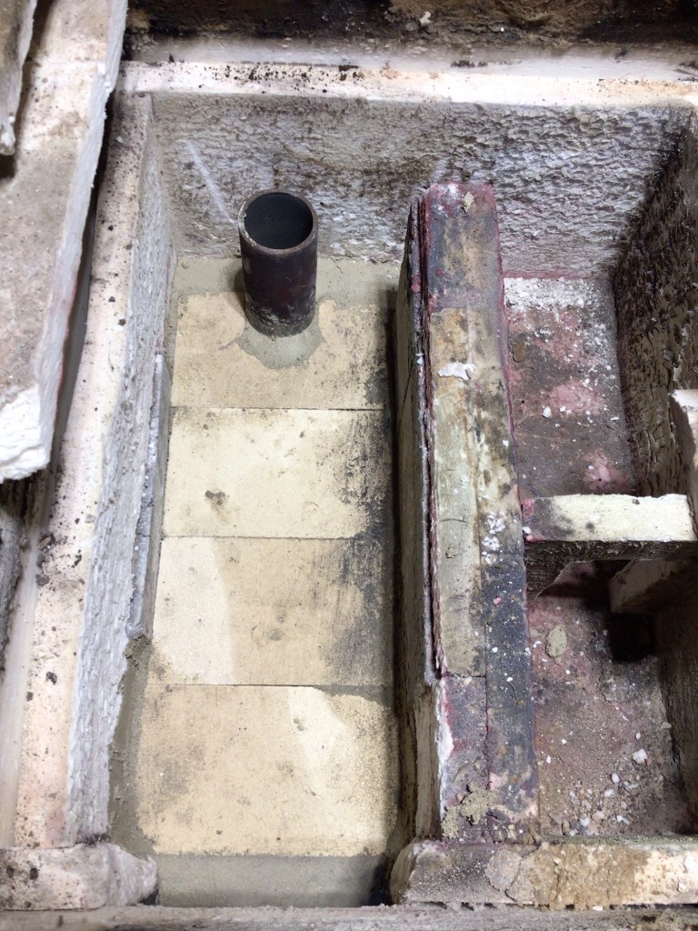 To prevent said wear, the firebox floor is now an inch and a quarter higher, comprised of flat firebrick. The addition of thermal mass to the firebox adds a variable, one I think I’ll welcome, as the temp of the firebox will drop more slowly between burns, give fires an extra bump, helping green wood combust. (My goal of course isn’t to burn anything green, wet, as that creates creosote and clogs things up.)