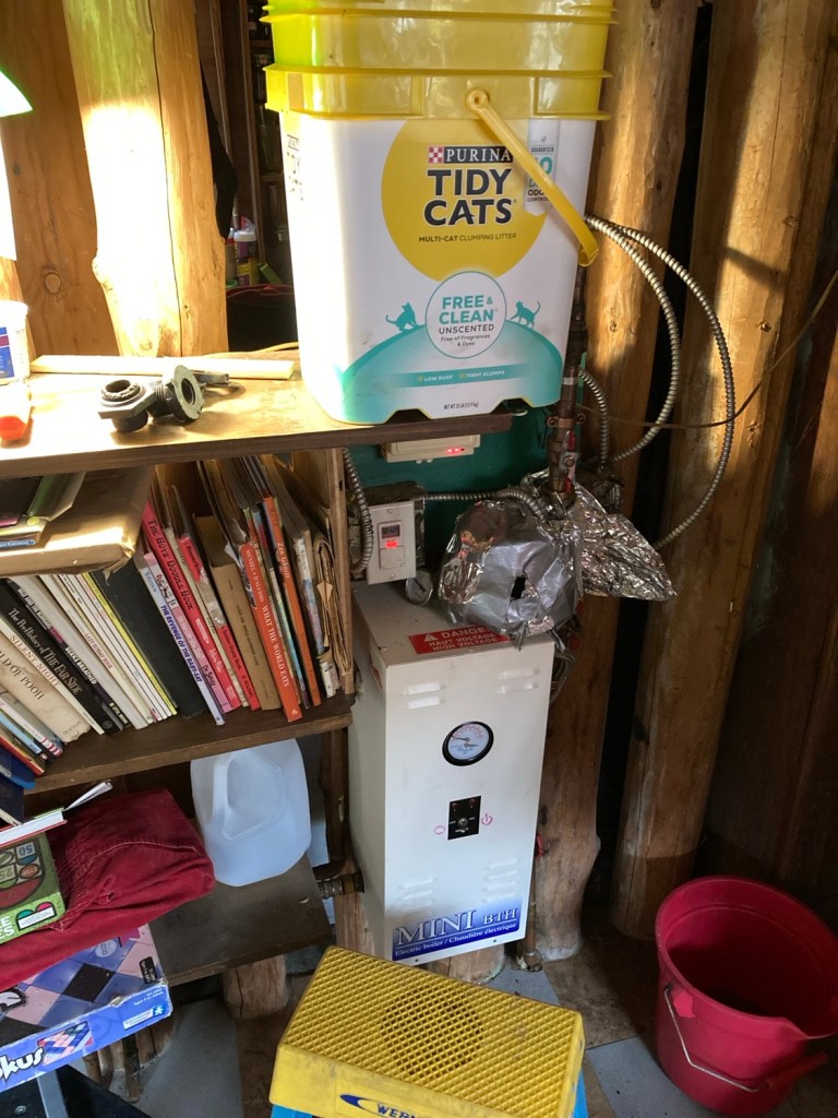 And I had to fiddle some with the connected heating system. I had the foresight to pick up a couple parts that I needed. I broke one last spring (reverse thread on plastic, I’m a brute…) and the heater has been offline since. I had time to replace the broken piece (and upgrade the other) and charge (refill) the system and it’s all up and running.