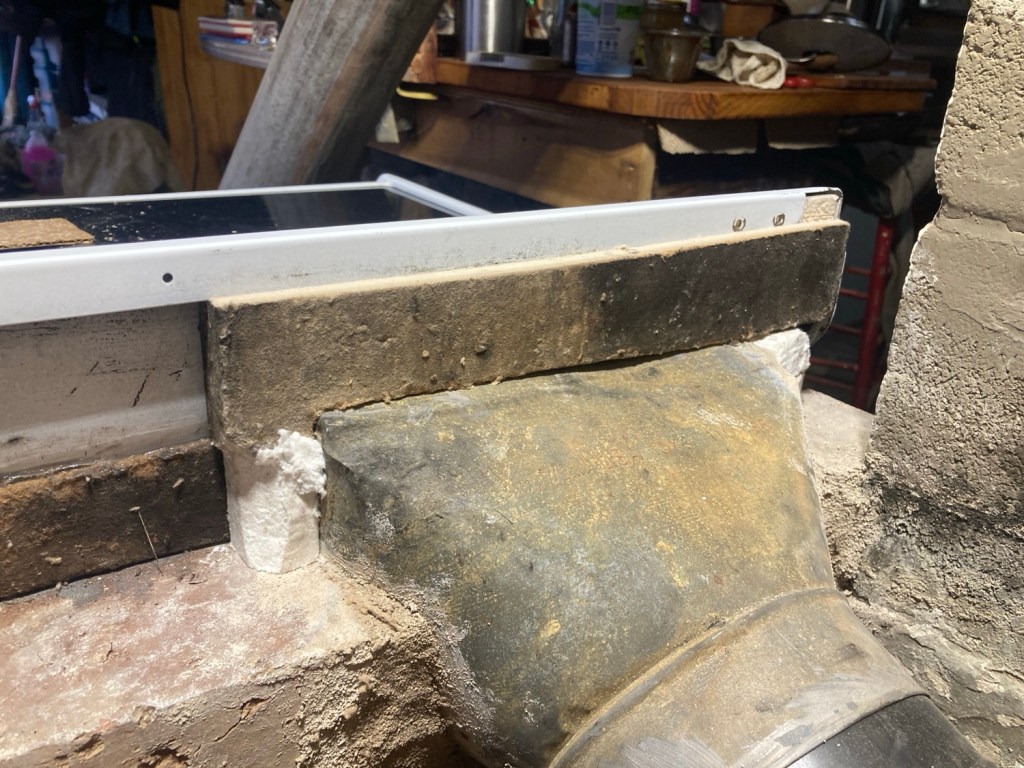 The irony is that the tool I’m looking for is to fasten the final link, the last, the sections of pipe that will connect to the bench/stove and whisk the gases up Up UP and away. A “same but different” tool will suffice for the task, in the meantime I’ll pull the incense out of the stove so as to enjoy it in the house, it proved its point already!!!