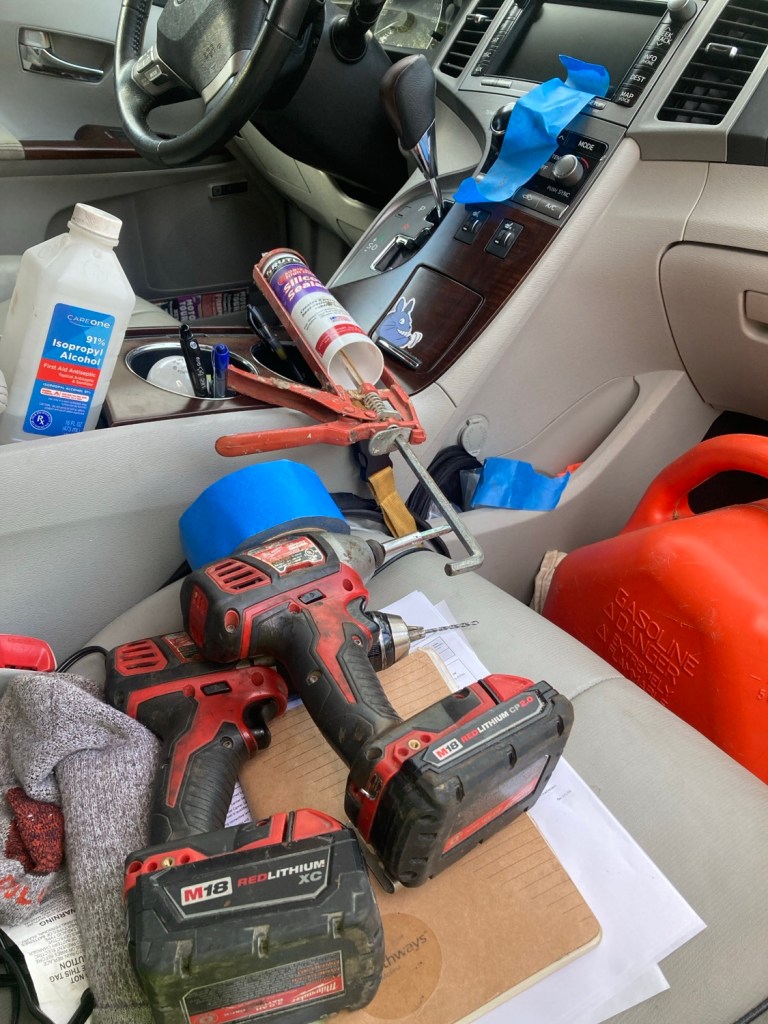 Next level attempt. The rocker switch toggle lasted but a day stuck right on the panel, not surprised. I’ve embedded a small screw right in the middle of the panel now, attempting to adhere the same stone mushroom to it. The adhesive popped right of the plastic on the dash, but clung in places to the stone. Superglue will be next, and may have been better to start with, but that stuff can be easily regrettable, it’s not forgiving at all…