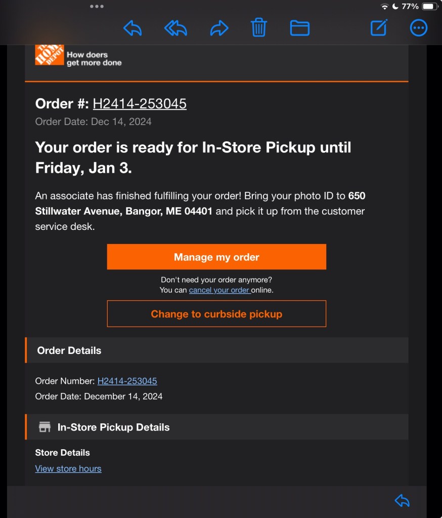 The irony is that I read the email while on break and the local store had closed, @9p! Yup, busy day, like epic busy, and it flowed well. Tweren’t perfect but I’m pleased, most I’ve delivered in a day and didn’t miss a single deadline.