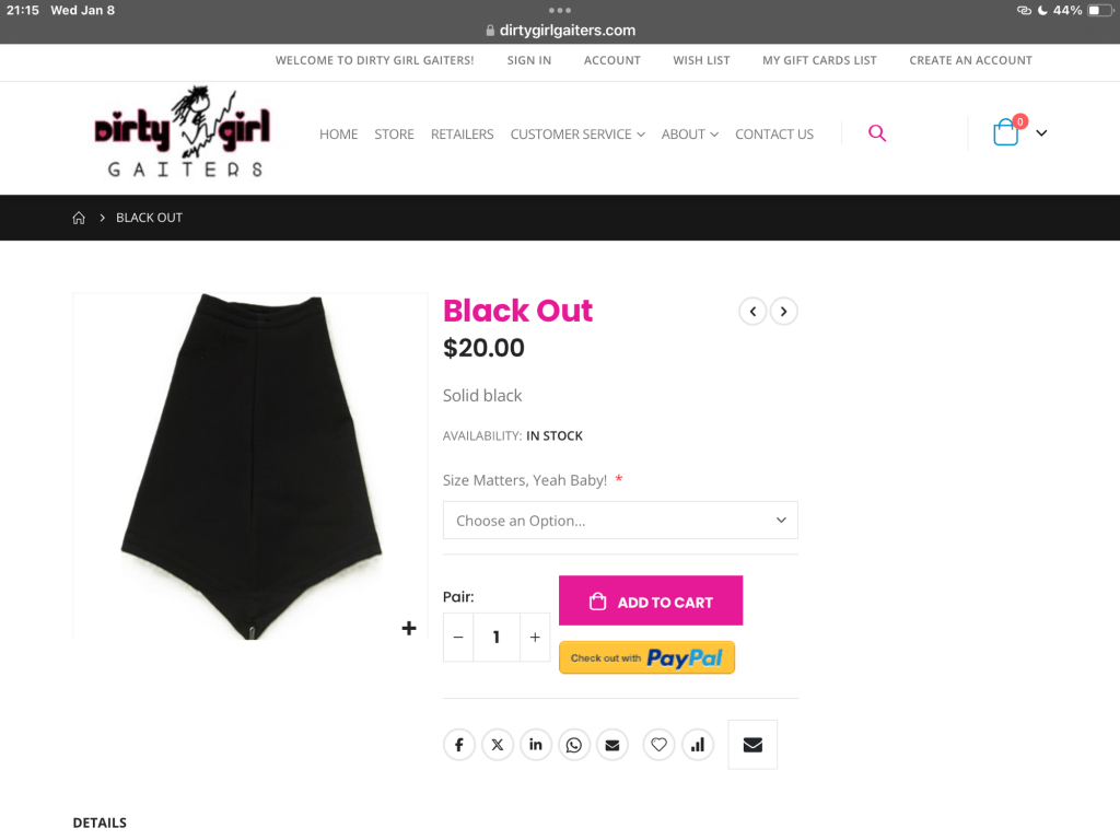 I’ll be sure of that now, thanks to the Dirty Girls! Flipper turned me on to them and I have a gray pair, not FedEx uniform compatible, I don’t want to bring attention to myself. (Because I’m going to start wearing different pants, the uniform pants are so-so at best…)