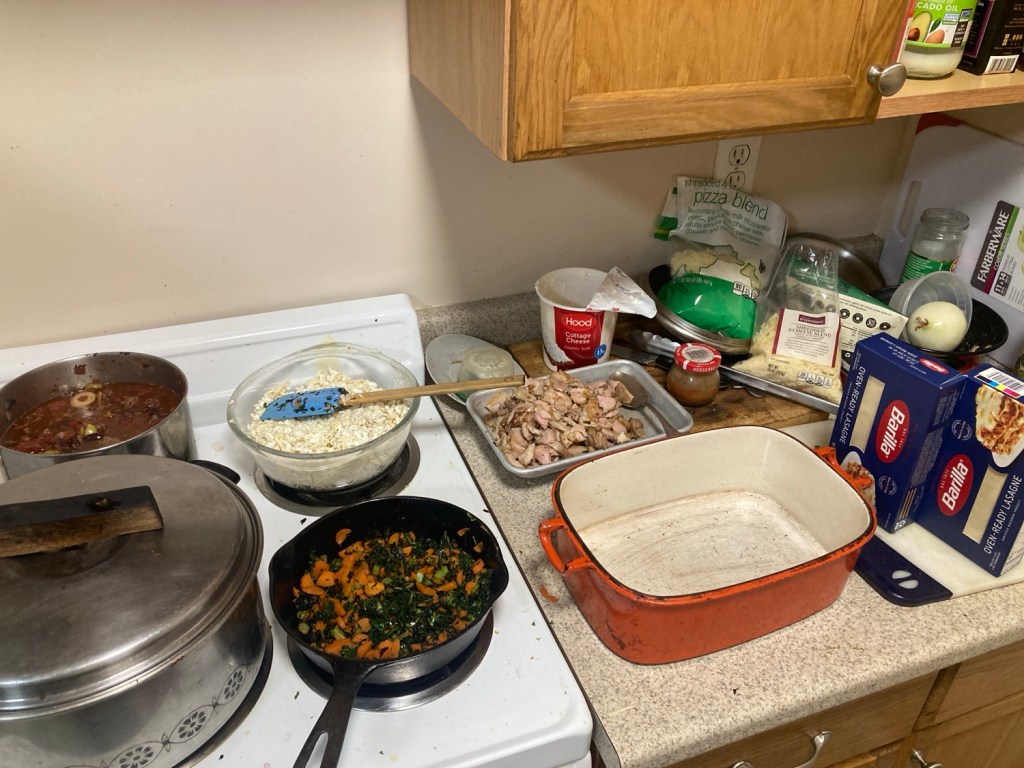 I’d been thinking “puttanesca lasagna” for some time. Nailed one (w/o an oven!) over thanksgiving break with Deedles. Riffing on the theme