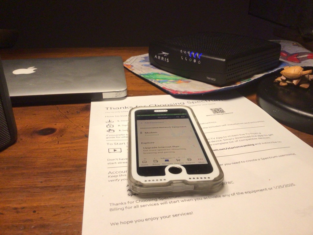 The modem is powered up and connected. And that’s that, for now. My router is due tomorrow, which takes the signal from the router and makes it “talk” to my devices. Do they make router-modems (rodems, mouters?), like one device instead of two? Of course, but consumer culture wouldn’t be what it is with “less but better”…