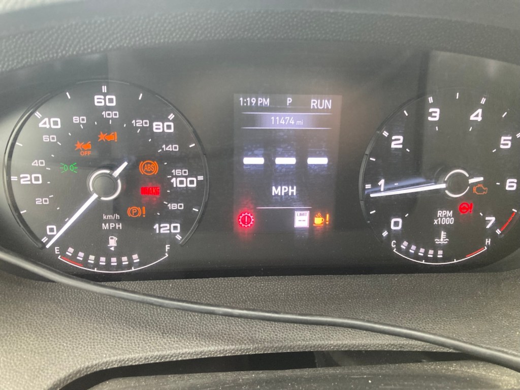 Lights went on, warning chimes binged, so much fun. I realized as I created the hill and got traction back that things weren’t right. The speedo wasn’t moving, text warnings on the dash and a coffee cup, check engine light and a red steering wheel, why wasn’t I I front of a slot machine?!?! (the coffee cup was a “tired driver warning” as the vehicle was jostling from side to side in the lane grooves on the slippery hill)