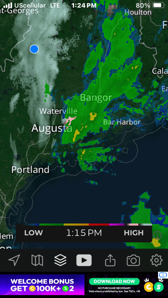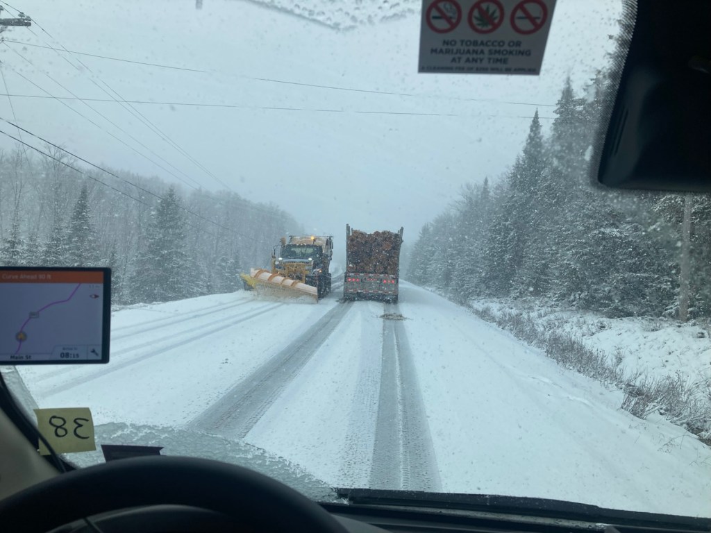 Was very wintery inland, up high. I was even stopped on Attean pass (only miles before Jackman) with a few trucks just stopped on the snowy road and whiteout.