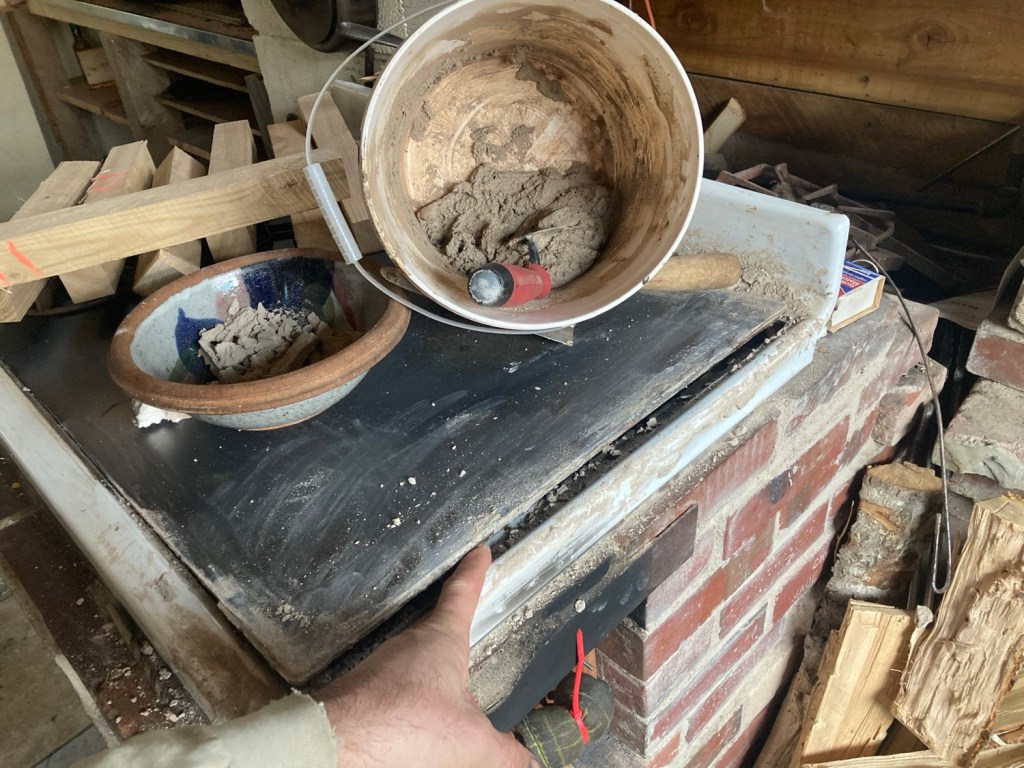 I’m going to fill the gap while the stove isn’t hot. It won’t be a proper cure, but I’ll be able to have a fire tonight.