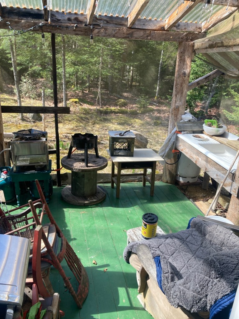 Today in the sunny wind I’m springs cleaning here and there. The screen will be crucial in a couple weeks, so preparing to finalize sink placement and then the screening.