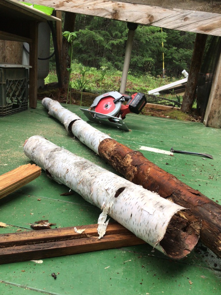 I’m scheming a set up to the right that will gravity feed rain water to the sink, and maybe an outdoor shower while at it.