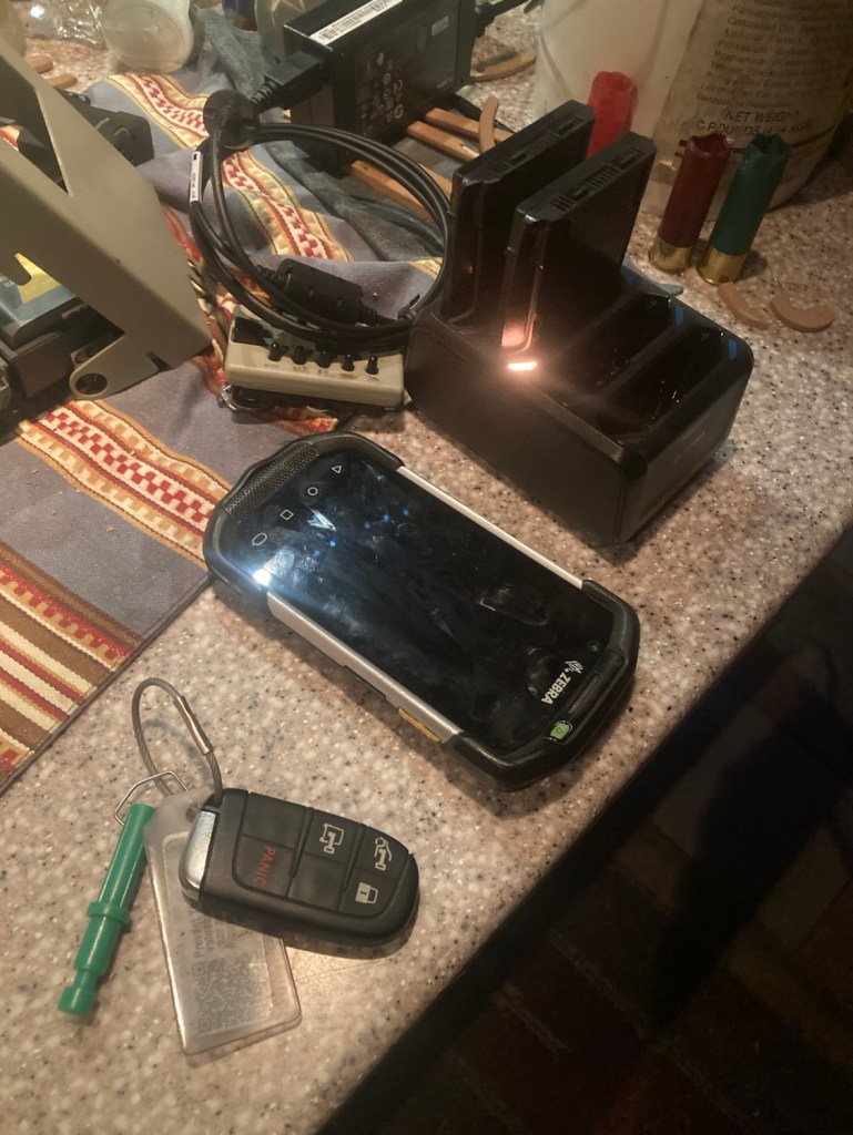 I charge batteries for my device (it’s an Android handheld scanner called the LEO made by Zebra) and have the keys inside. I live here now, working out of my home!