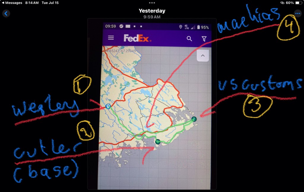 It’s possible that 461 will have zero pickups (pups) as well as my route 469. 461 is the area above/north of my route (Roughly Perry, Pembroke, Edmunds, Dennysville, Meddybemps & Berry. I’ve never done it, very rural route between Machias and Calais.)