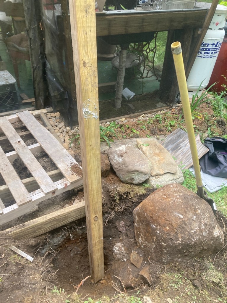 At least OVER (enough to make room for the post)! Amen for the fulcrum and a serious crow bar