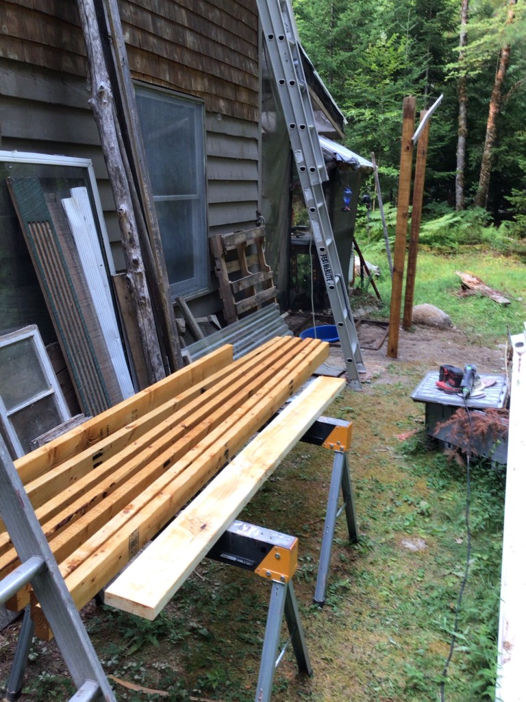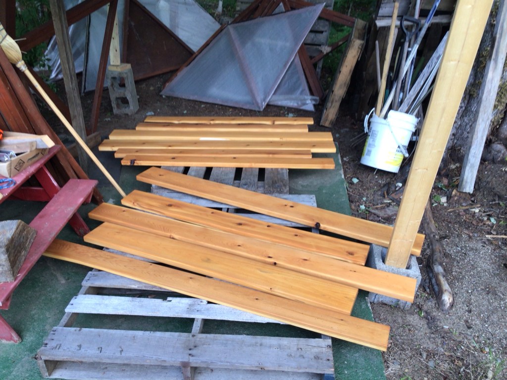 The materials for the roof structure absorbed some too, but didn’t get the sanding treatment. Why? I’m not standing on them in bare feet…