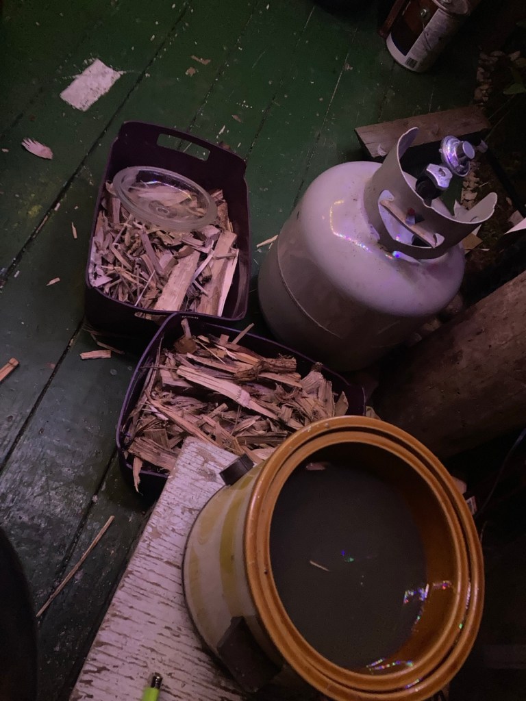 I’m dipping scraps from my firewood delivery into wax for kindling purposes. It’s the sort of project many wouldn’t consider, let alone do.