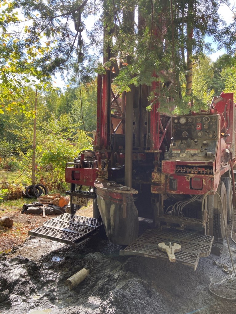 So far the hole is 170 feet deeper than my neighbor’s well (150 yards away drilled a year ago) and the flow is a pittance. I wondered out loud if the dry season could have an impact. “Not at that depth.”