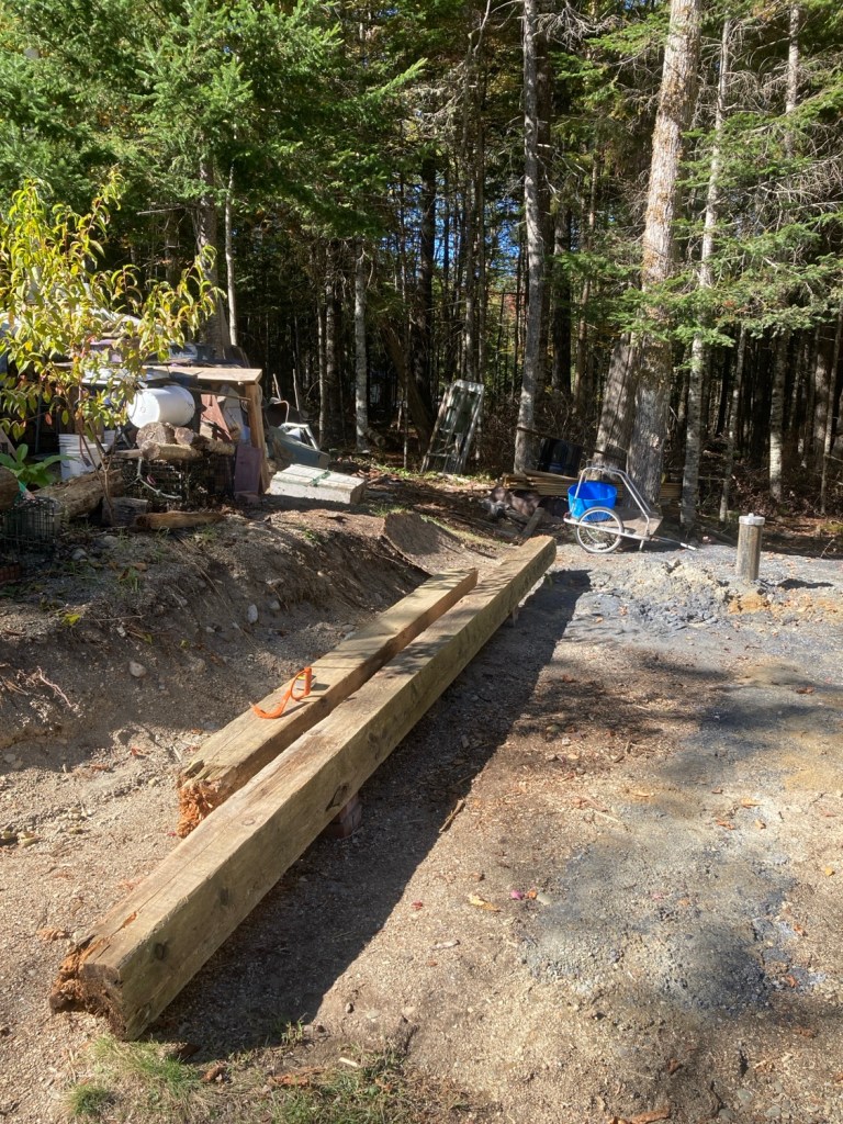 Like the stone I moved yesterday, if you can budge it an inch or foot, you can relocate it! The (orange) pulp hook proved its worth as I gently dragged the beams across the forest floor. It was a fun and simple process, for a guy who doesn’t go to the gym, that demanded extreme focus. When a pulp hook looses itself while (big-time) force is being exerted very (big-time) bad things can happen!