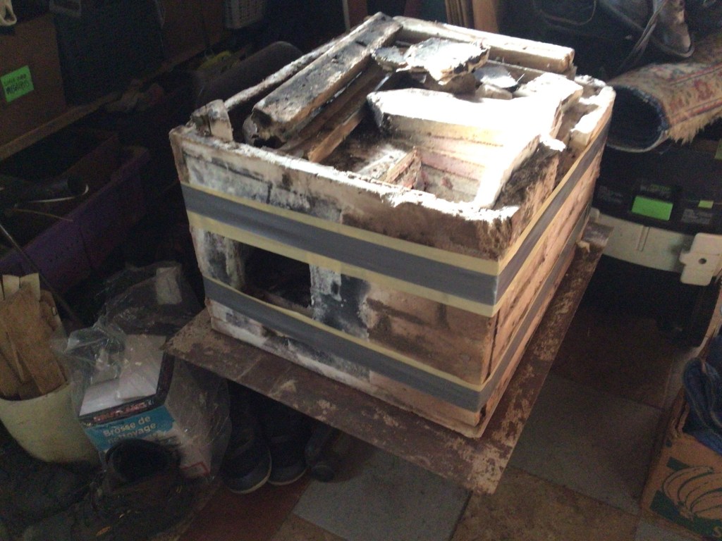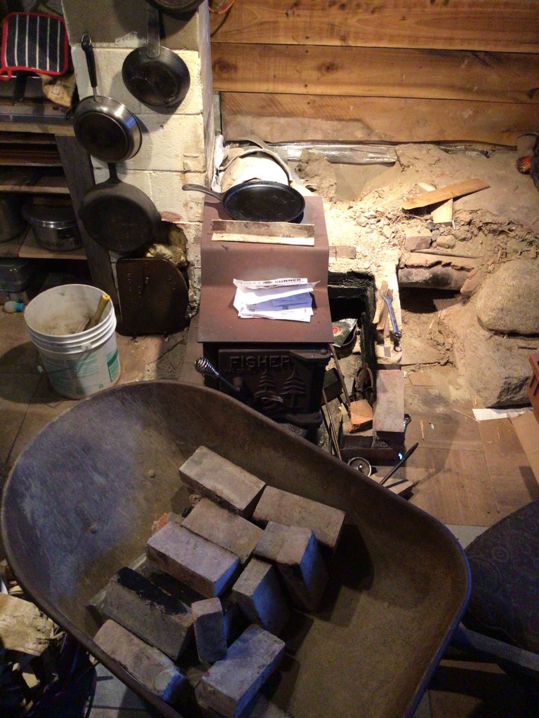 When the mighty barrow is in the house! Removing the side walls of the riserless core rocketstove. I used sand and fireclay as the mortar, best decision ever! It enabled me to dismantle it with ease, and set aside the mortar to reconstitute and reuse (and isn’t toxic).