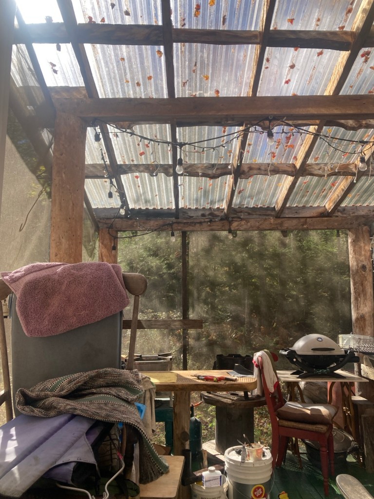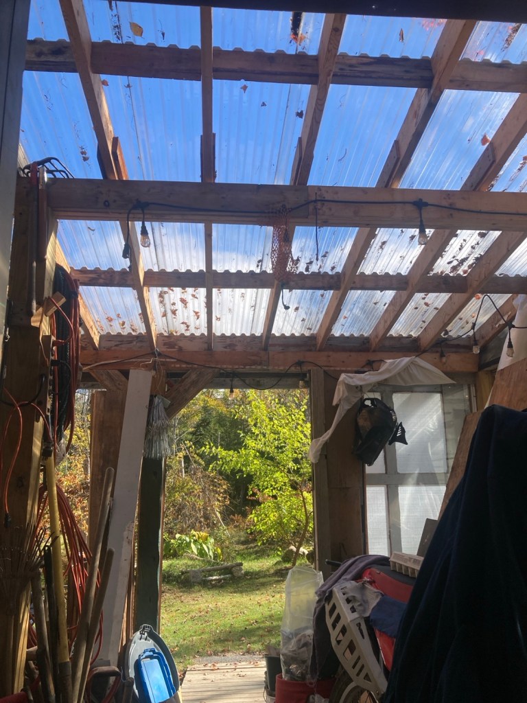 Shade material gets stowed or pitched, let the light in! The angle is changing fast now, I was watching sunset from the junction of 192 and 9, up on the ridge of Fox Hill overlooking my land and west, the sun has shifted significantly.