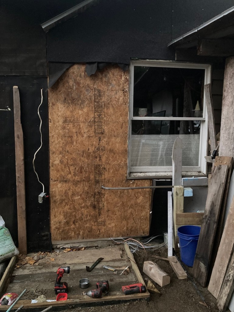 Buttoned up outside with improved insulation. Checking the weather to see what’s up tomorrow. The north wall rarely gets wet, but I’m eager to seal it up.