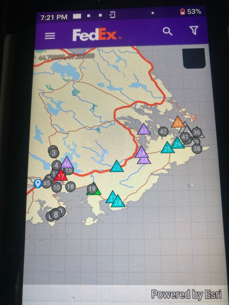 This morning I got an “Aye Laddie” when I dismounted and then handed a mildly mangled box of NY bagels to a fellow. It cracked me up as it was an I direct acknowledgment. Many don’t notice. One fellow in Lubec held the door for me as I was bolting from a stop in a store and did a sort of double take looking down, but didn’t say anything verbally or in his face.