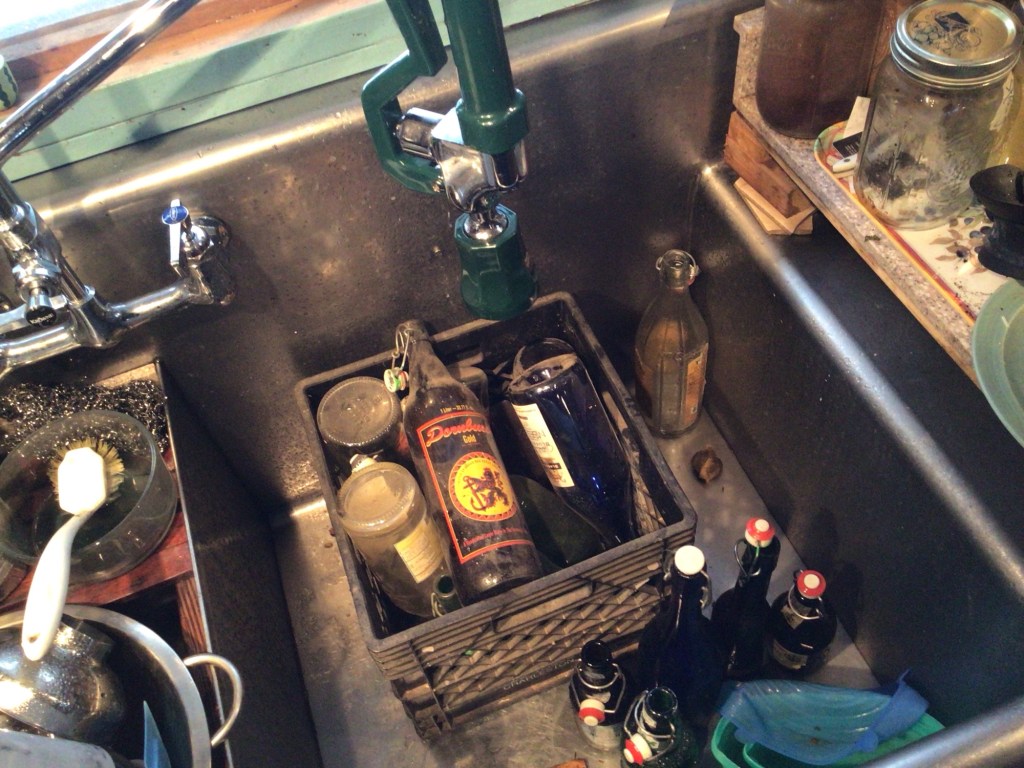 Rinsing bottles as I found a home for them. I’m getting emotional, I have a deep relationship/history to these bottles. Now that I have running water, brewing again is an option. Will I? The struggle is real, but they are in the way and something has to give. A good beer shelf would be easy to create, but they are dirty and in the way, so exploring….