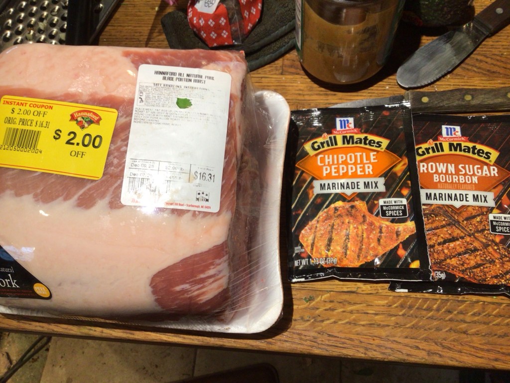 The marinade packets came from P&J as I swung by to scoop up my new coffee system. I usually make my own marinades, but this will make sure that I have differing things going on, the roast is big enough to halve, and YES, I’ll be roasting tomorrow too, as in, another all day fire. Charging the heat battery is fun, AND flavorful.